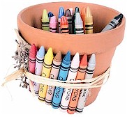 You can easily create a little art station in your home with a small table and chair or a child's desk. Keep a good stock of paper, washable markers and crayons, chubby pencils, and paints on hand--readily available for those moments when a child is inspired! Children will enjoy building their own things with glue (glue sticks are terrific) and various paper materials. Keeping a box of a variety of different supplies is sure to fuel children's imagination--scrap paper, egg cartons, toilet paper rolls, cotton balls, dried beans, and other common objects from around the house. Craft supply stores have all sorts of doo-dads that will inspire kids--colorful pom-poms and feathers, foam shapes, sequins, and glitter are just some ideas.